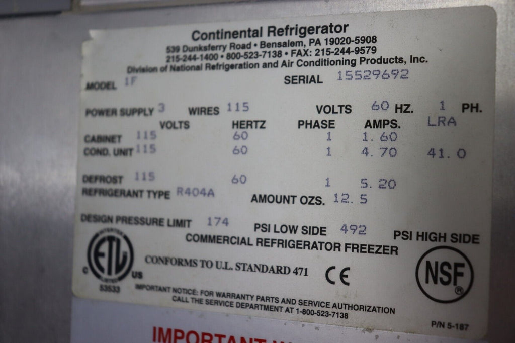 Commercial Reach in Freezer Continental 1F