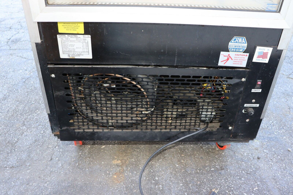 Elevate your commercial space with the Federal 3150SC-2 Refrigerated Display Case, a functional and stylish addition designed to showcase your products in a pristine and organized manner. The sleek glass finish provides a clear view of the contents, while the sturdy construction ensures durability in a busy environment. This floor model, featuring a single shelf, is perfect for retailers looking to maximize their display space. Crafted in the United States, the case is a reliable choice for any business, combining Federal's commitment to quality with a design that's both refined and practical.