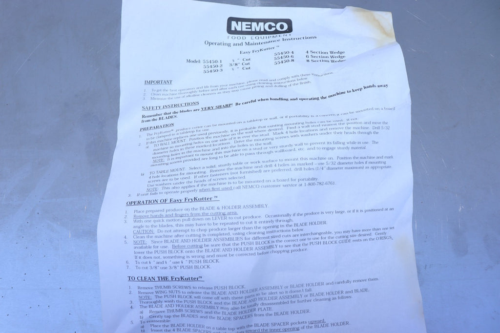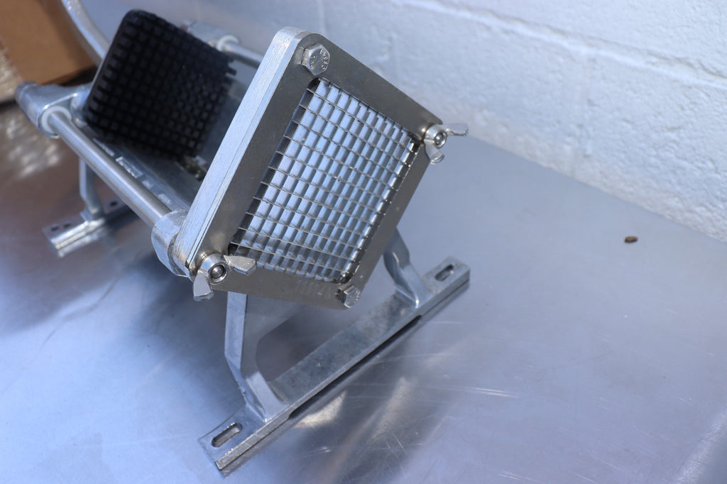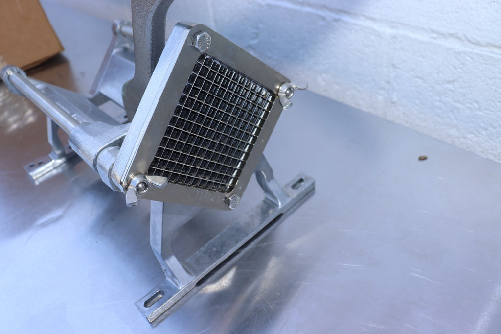 The Nemco 55450-1 FryKutter Easy French Fry Potato Cutter is a manual food preparation equipment designed for commercial kitchens. It features a 1/4" cutting blade with a square cut style, ideal for slicing potatoes for French fries. The Nemco brand is known for its quality and durability in the restaurant and food service industry, making this cutter a reliable option for businesses looking to efficiently prepare their potato sides.