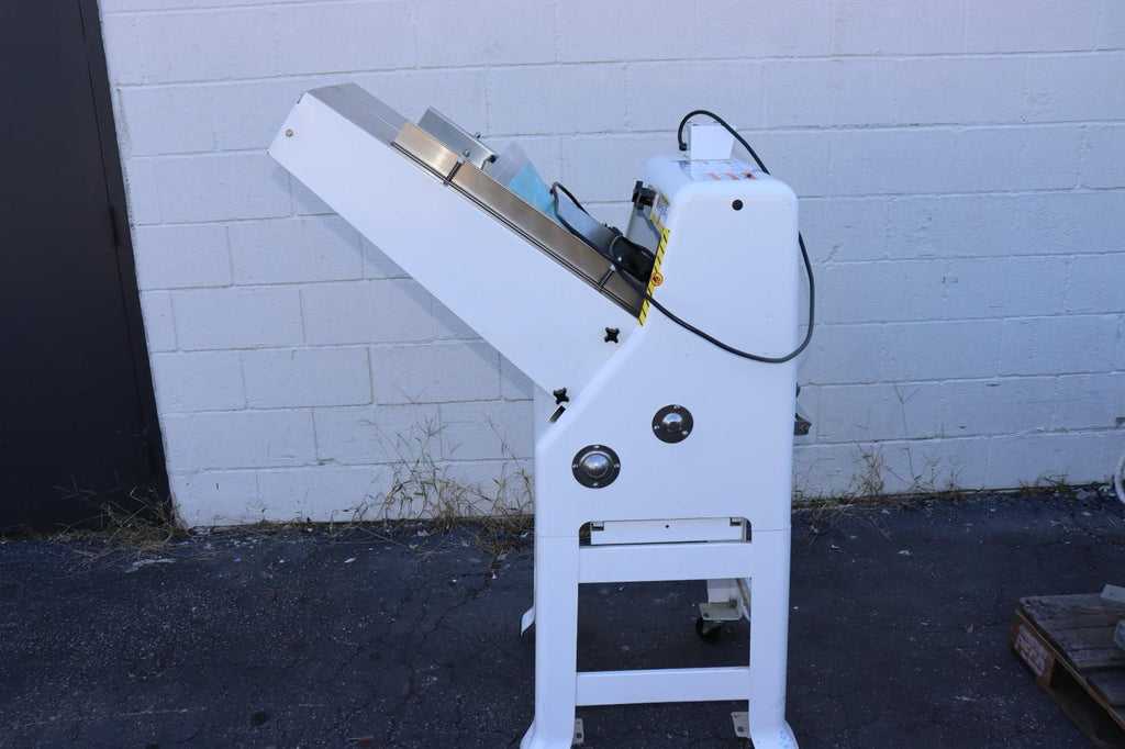 The OLIVER 797-32NC 1/2" Slicing Feed Bread Loaf Slicer is a commercial kitchen equipment designed for slicing bread loaves with precision. This electric floor model slicer, made by Oliver in the United States, features a 1/2" slicing portion weight and comes with wheels for easy mobility. Known for its brand reputation and quality craftsmanship, this non-domestic product is essential for professional bakeries and restaurants looking to create uniform and consistent cuts of bread for their customers.