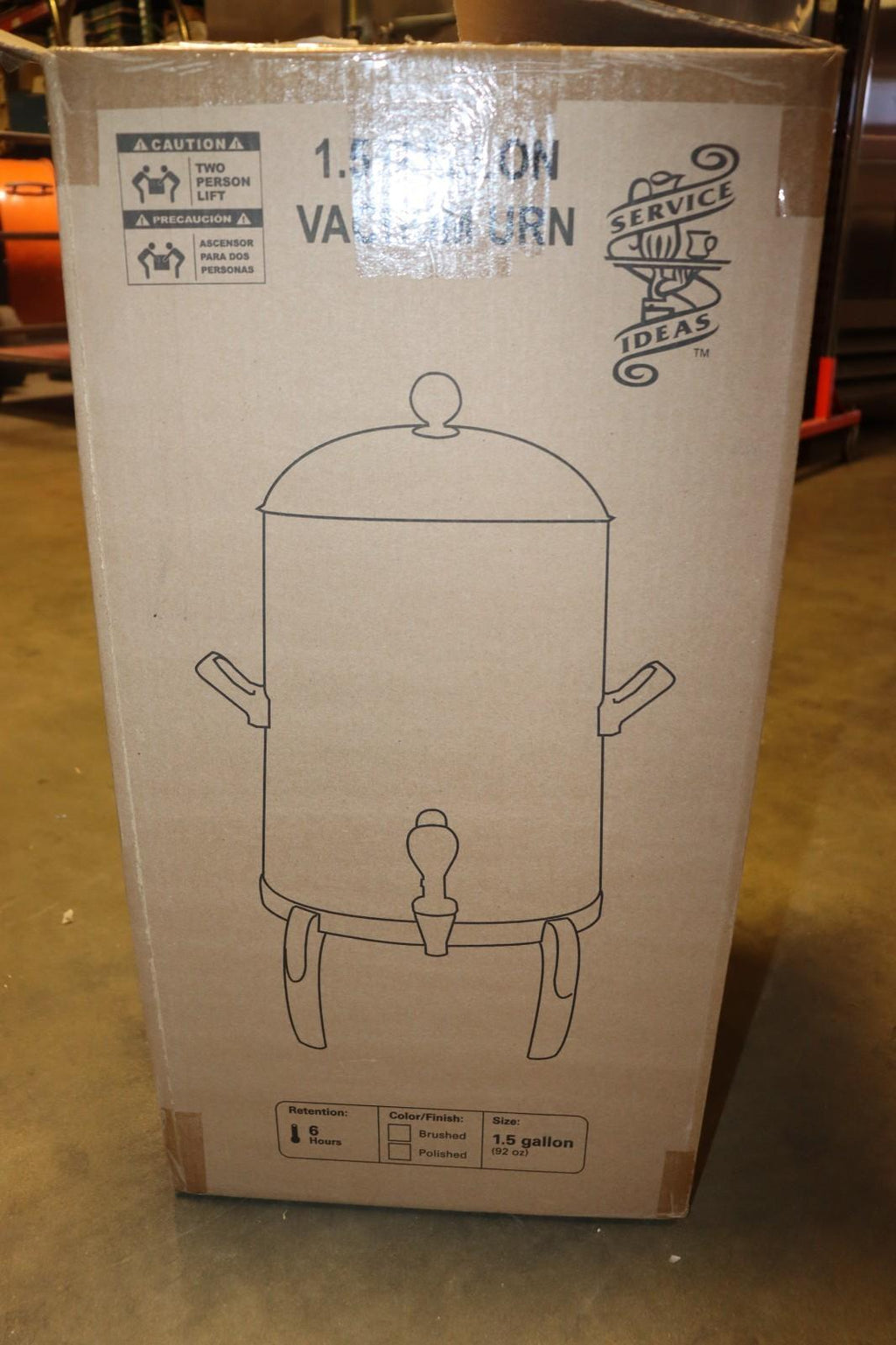 Serve coffee, tea or hot water at your buffet with the Service Ideas URN15VPSMD Polished Steel, Flame Free Thermo Beverage Urn 1.5 Gallon. Boasting a vacuum insulation, this product retains ideal serving temperatures for 6+ hours without the use of open flames or external heat. Additionally, its foam insulated lid creates superior suction further preventing heat loss. Convenient to use, it has a Tomlinson spigot and an interior splash guard that prevents splashing while brewing directly into the unit.