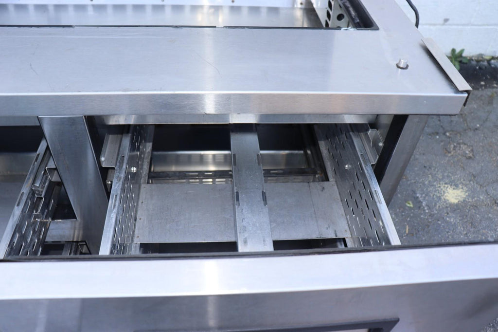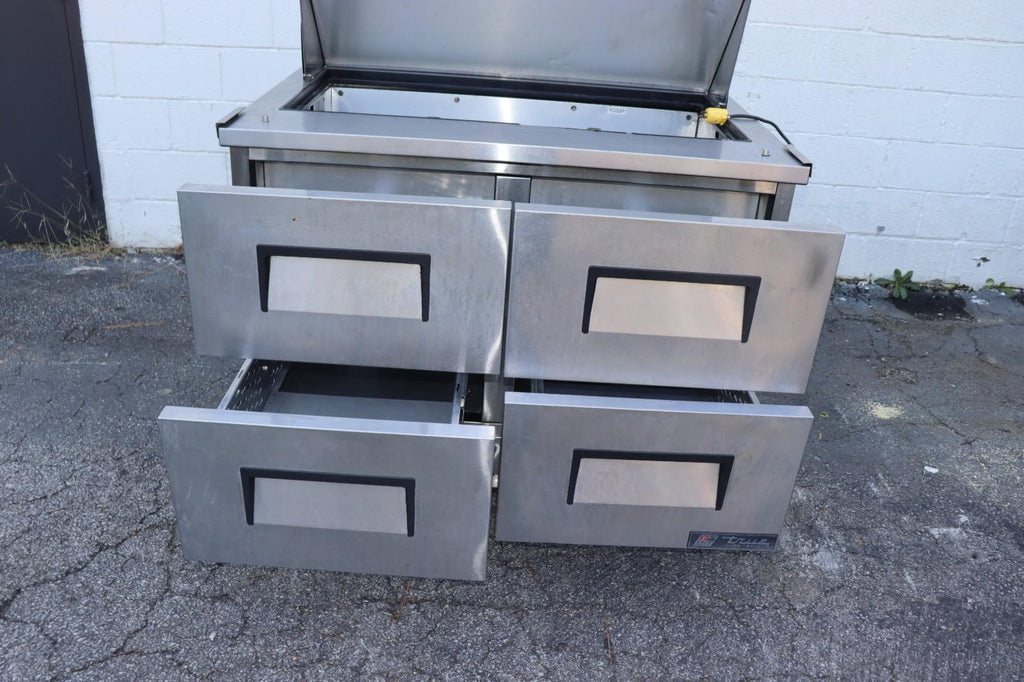 The True TFP-48-18M-D-4 48" Mega Top Food Prep Table is a high-quality food prep table designed for professional use in restaurants and food service establishments. With 18 pan capacity and 4 drawers for storage, it provides ample space for storing and organizing food items. The brand, True, is known for producing reliable refrigeration equipment, making this food prep table a durable and efficient addition to any kitchen setting.