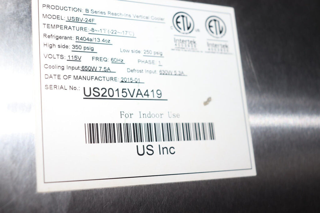 US REFRIGERATION COMMERCIAL SINGLE DOOR REACH IN FREEZER USBV-24