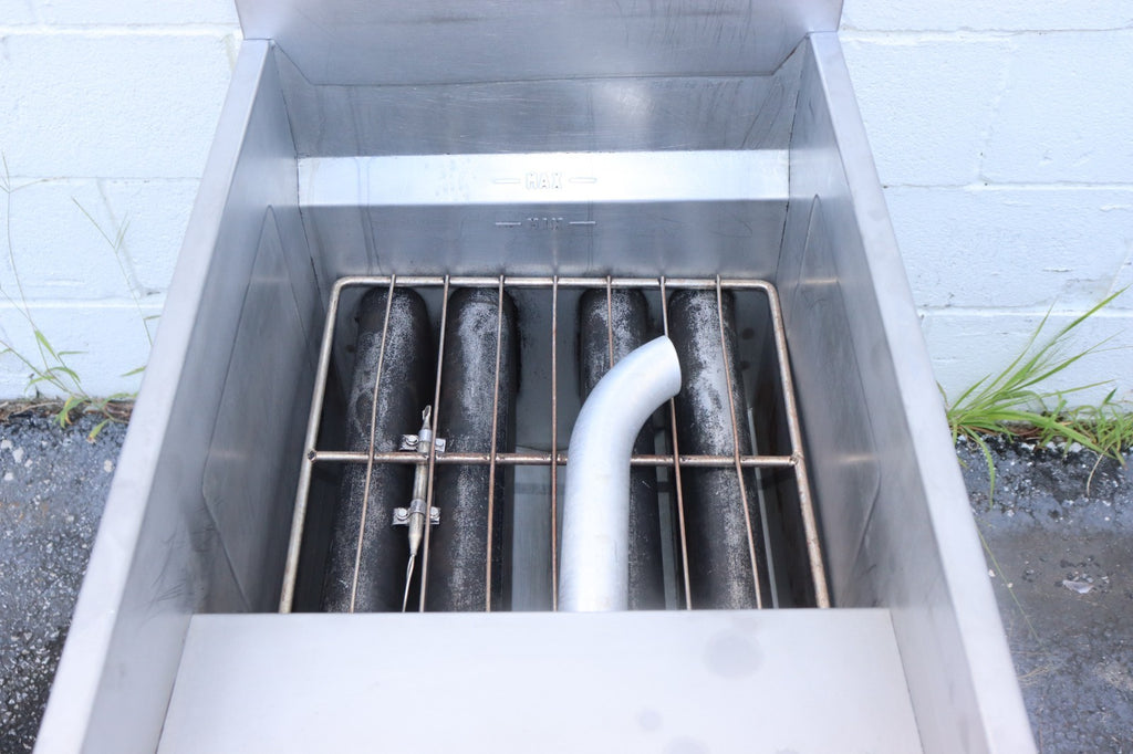 The Vulcan LG400-1 45-50 lb. Natural Gas Floor Fryer is a powerful cooking appliance designed for commercial kitchens. With 120,000 BTU of heat output and four tube burners, this deep fat fryer can quickly and efficiently cook large quantities of food. The floor model design makes it easy to use and maintain, while the single pot capacity holds up to 40 lbs. of oil for frying. Ideal for restaurants and food service establishments, the Vulcan LG400-1 offers high performance and durability in a compact design.